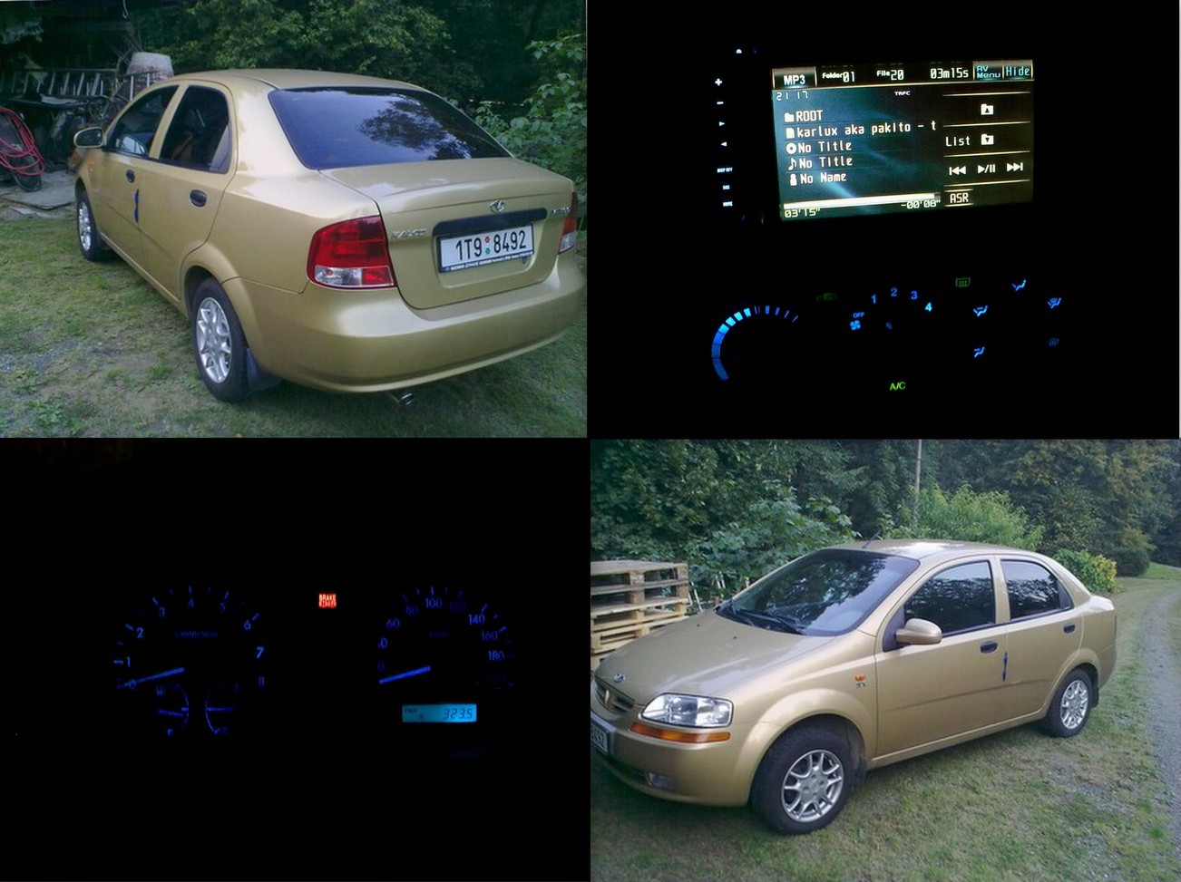 :o) No Aveo je novější ale měl jsem předním feldu a interier a exteriér má hezčí KALOS.Tenkrát když jsem ji kupoval jsem měl z korejce strach ,ale dnes co vím o škodovkách bych tenkrát šel do něho a nemusel jsem ho mít pořát v servisu jako feldu!!! Ta telka je vzadu super byla by dobrá pro děcka na cestách.Je vidět že máš k autíčku vztah to se pozná tak ať jezdí!!! -i