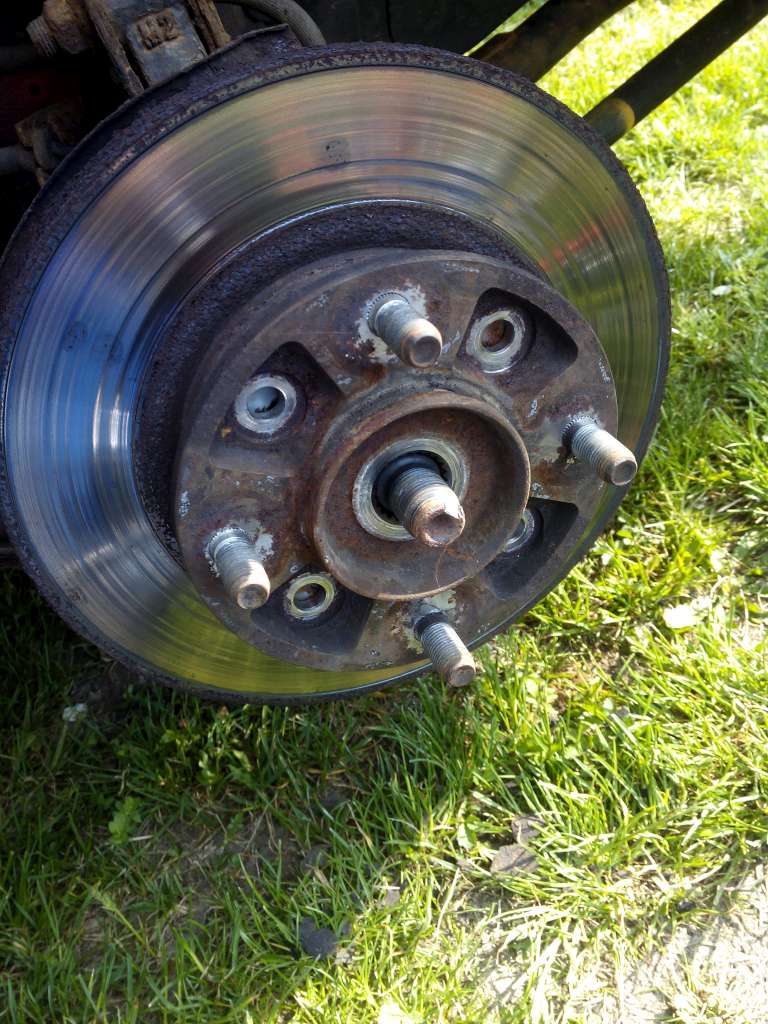 Jak sundam tu část ze které koukají šroby kol. Když jsem povolil matici a ty 4šrouby tak se hybal kotouč ale ta první část se šroby kol nejde sundat.