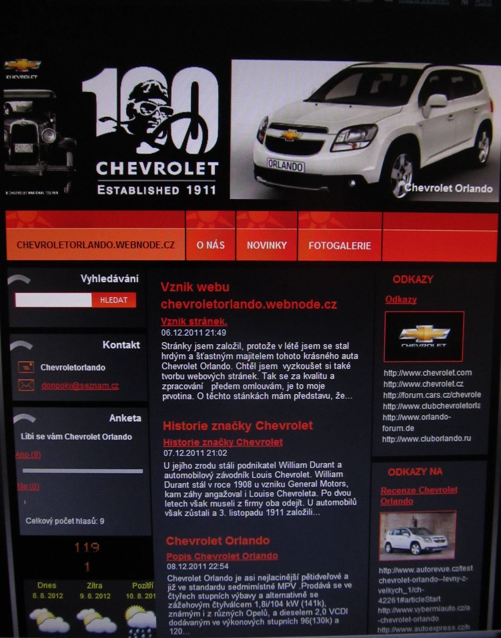 Jednou jsem se nudil tak jsem si skusil tvorbu web.stránek a tohle vzniklo .Až bude trochu více času dám na ty stránky i něco o Orlando clubu Eagle Squadron a chtěl bych i na ně dát recenze od členů fora -i :idea: :PP: http://chevroletorlando.webnode.cz/