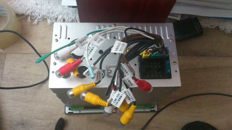 Ta směť kabelů slouží na připojení externích věcí, kamera, sub, zes, gps atd, nevím přesně nepřečtu co na tom je napsaný a ten černej konektor ISO je napájení
