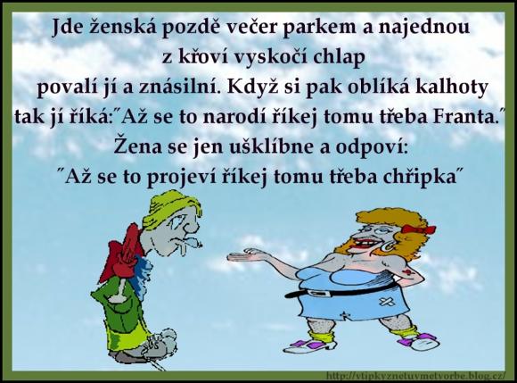 A žena mu na to odpoví: "Podívej se na skříň a posereš se taky."