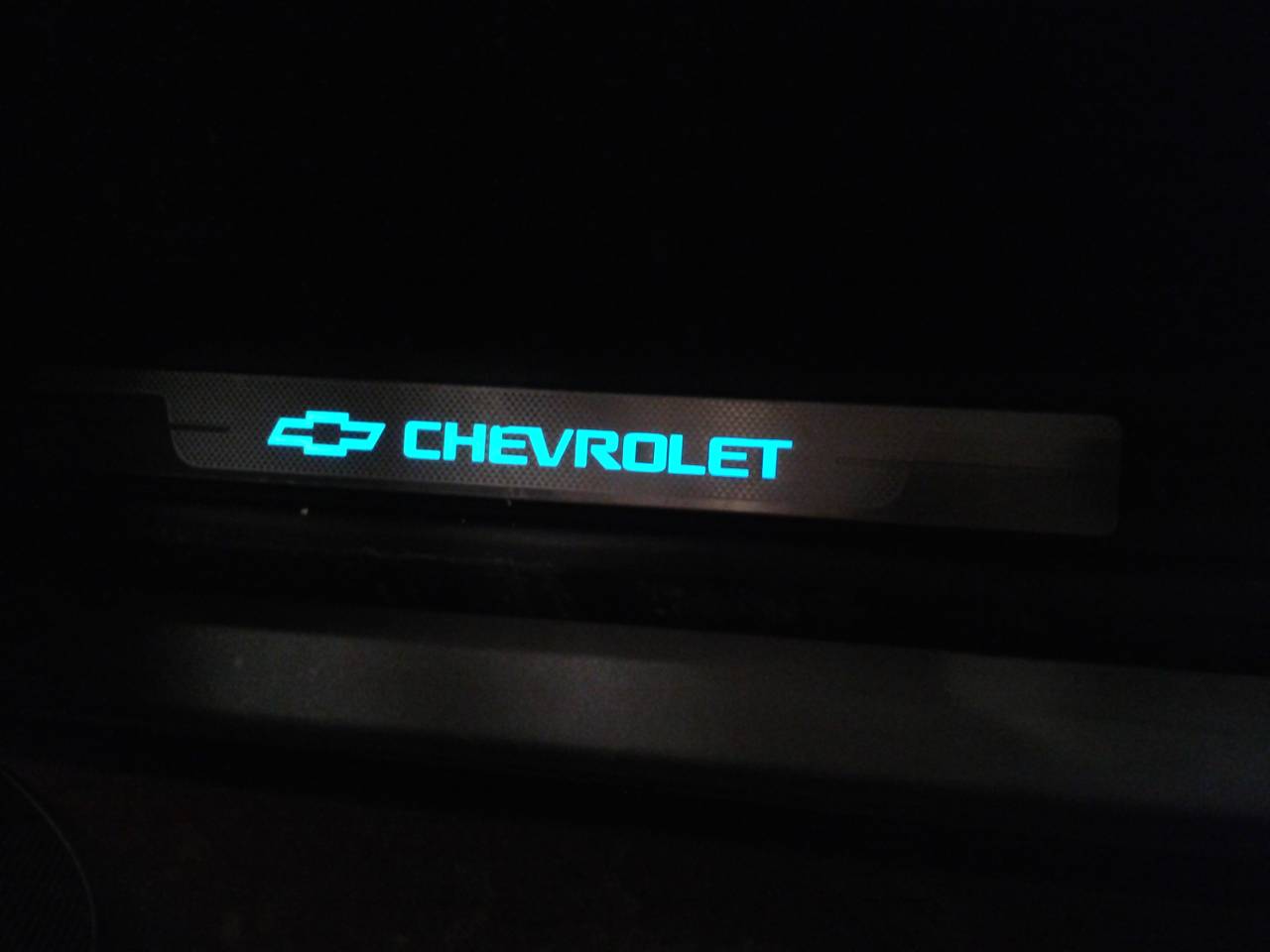 jde o podložku z plexiskla, vyřezanou do tvaru znaku chevrolet, znak je použitý origo z auta, přilepený k podložce..v plexi podložce jsou ledky na prosvícení, do dveří se vrtat nemuselo, dírky už tam jsou pro origo znak. Káblíky připojeny na brzdové světlo - červená led, na obrysovky - bílá. Pokud si to člověk udělá sám tak investice 100kč?