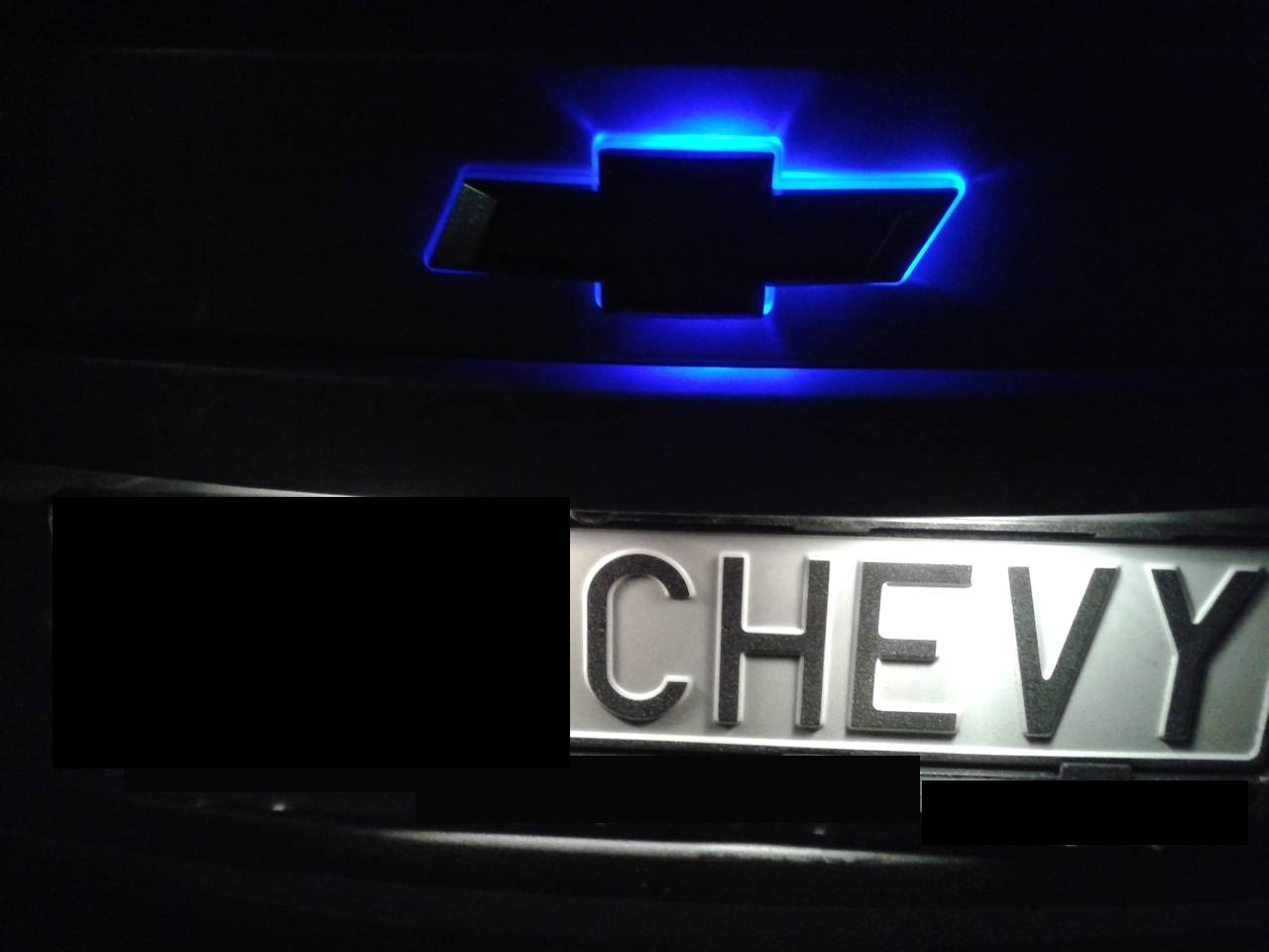 jde o podložku z plexiskla, vyřezanou do tvaru znaku chevrolet, znak je použitý origo z auta, přilepený k podložce..v plexi podložce jsou ledky na prosvícení, do dveří se vrtat nemuselo, dírky už tam jsou pro origo znak. Káblíky připojeny na brzdové světlo - červená led, na obrysovky - bílá. Pokud si to člověk udělá sám tak investice 100kč?