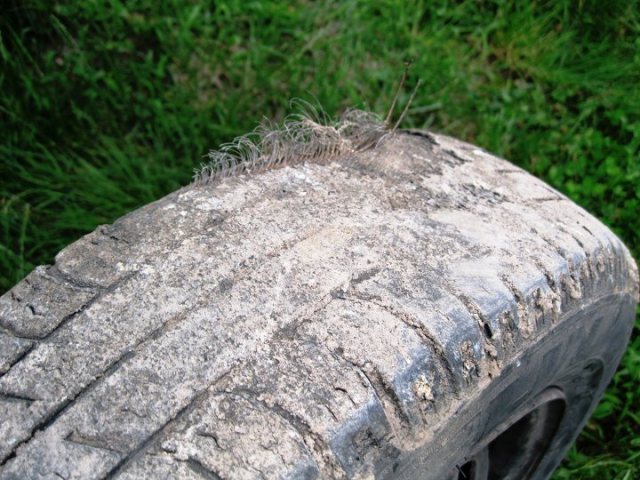 Sériu príhod s rozdeľovačom by som ešte doplnil inou nehodou, a to keď sa tatkovi vplyvom rozpadnutia ložiska zadrelo koleso. Vtedy som musel prísť na pomoc Matizovi naším staručkým Fiatom 600D. Závada sa nám nepodarila opraviť na mieste, nakoľko korunová matica (neviem či som to správne pomenoval) bola totálne spečená so závitom, ale na druhý deň sa ju podarilo dať dole (odbrúsením a odklepaním) a narezať nový závit, nalisovať nové ložiská 8) . Pridávam foto ako dopadla pneumatika po zaseknutí kolesa a ešte jedno foto Matiza a Fiatu.