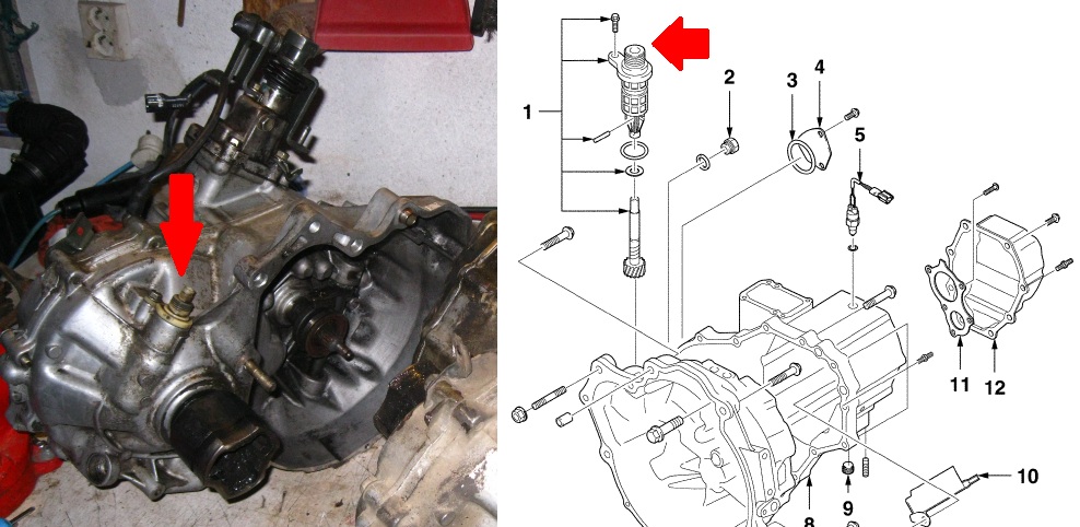 Keď sme posledne menili prevodovku, tak som ten náhon rýchlomera vyťahoval. Na obrázku som ti znázornil, kam sa zasúva to otočné lanko, tak to snáď pomôže. Myslím, že sa to dá vytiahnuť aj zhora. -i