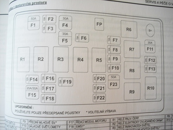 pojistková skřín v motoru