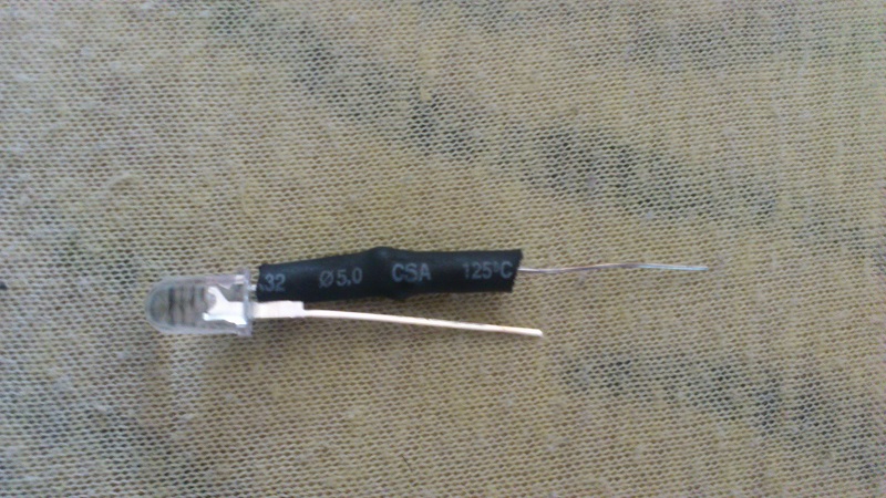 Použil jsem vysokosvítivou červenou ledku a na tu ledku jsem napájel odpor 1Kohm (ta ledka má dva drátky,jeden delší a druhej kratší,ten delší je + a ten kratší je mínus)