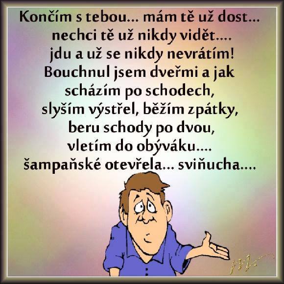 "Leží muž na smrtelné posteli a říká své ženě, která sedí u jeho lůžka: