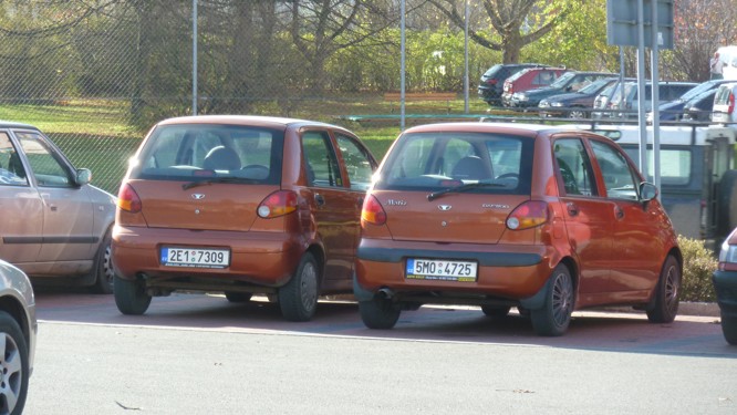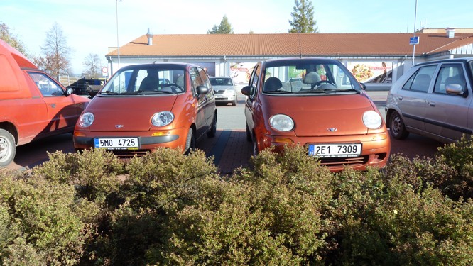 otvírám novou fotorubriku MATIZ dvojčata. Jak vidíte, chce to jenom pohotově zaparkovat vedle někoho, kdo má stejného Matesa jako vy a pak jen vyfotit. :D :PP:
