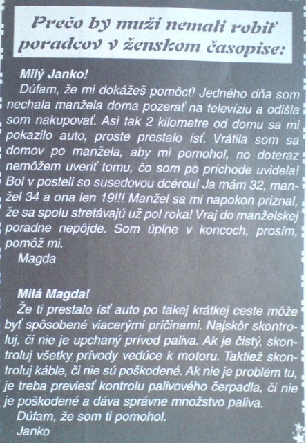 Na ďalší deň vyjde článok v novinách s textom: