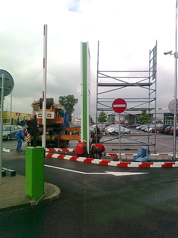 Keď pútač s neokomustickým znakom,teda okrídleným šípom,tak zásadne sa montuje nakrivo,ale Pat a Mat v akcii, A JE TO
