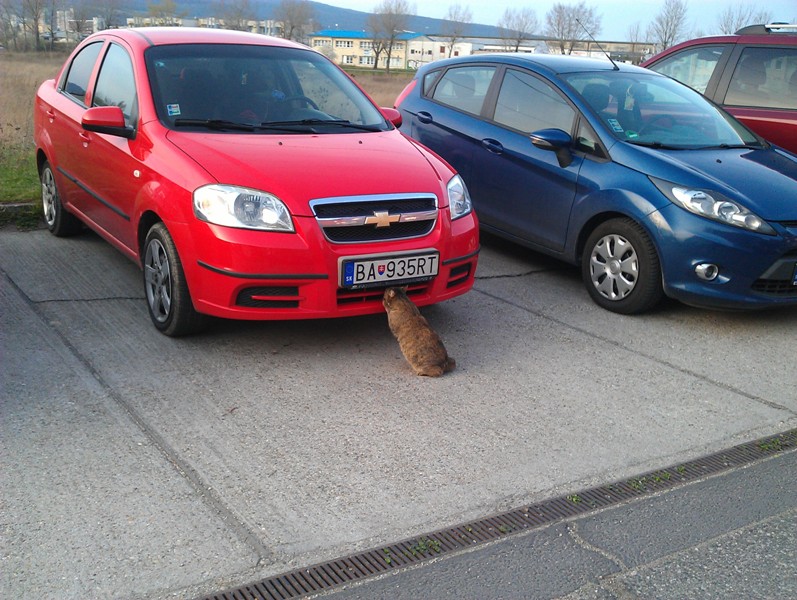 Zaparkujem, príde moja sídlisková mačka - volám ju Diablik, olíže a ožerie mušky z auta -i škoda že nedočiahne aj vyššie :lol: