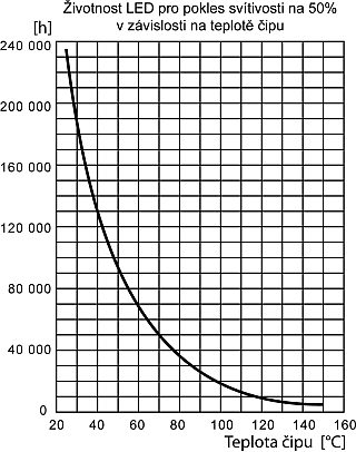 Přidám jeden grafů co se toulají po internetu. Ukazuje, jak je to teplotou a životností LED.