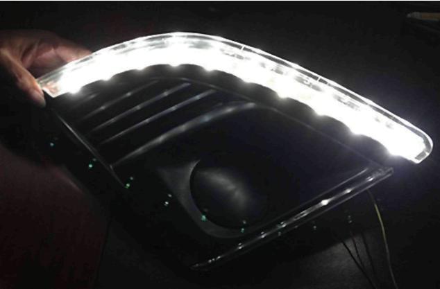 1.Sundáme plastové černé kryty mlhovek,není potřeba sundávat celý přední nárazník,šroubovakem(zabalíme do kusu hadru) uvolníme plastové západky krytu mlhovky-jejich umístění viz.foto.Zhruba v jedné třetině je kryt jištěn ještě šroubem,ten opatrně střihneme nůžkama na plech nebo těsně před koncem v plastu krytu, zase viz.foto.Šroub zustane v nárazníku,vrtačkou těsně vedle šroubu vyvrtáme adekvátní díru a šroub vyndáme ven.Vyvrtanou díru trošku zvětšíme a protáhneme jí kabelový svazek(konektory) nového krytu a led svícení do motorového prostoru.Umázneme silikonem.Docvakneme nove kryty s DRL.Kryty drží pevně i bez toho jednoho šroubu.