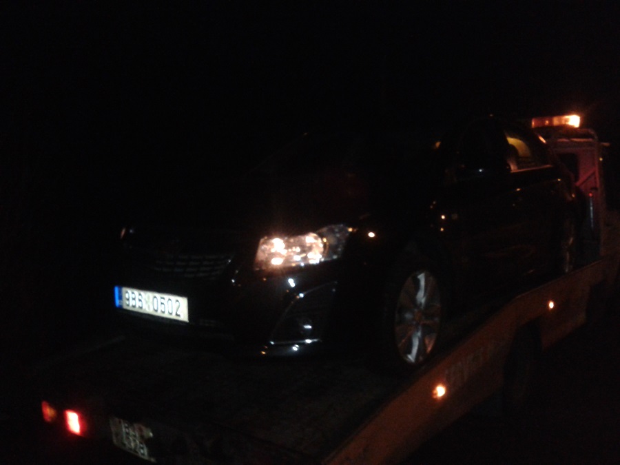 kolegov strýko pri tlačení auta ( zozadu ho zrámoval týpek vrátane výstražného trojuholníka )...