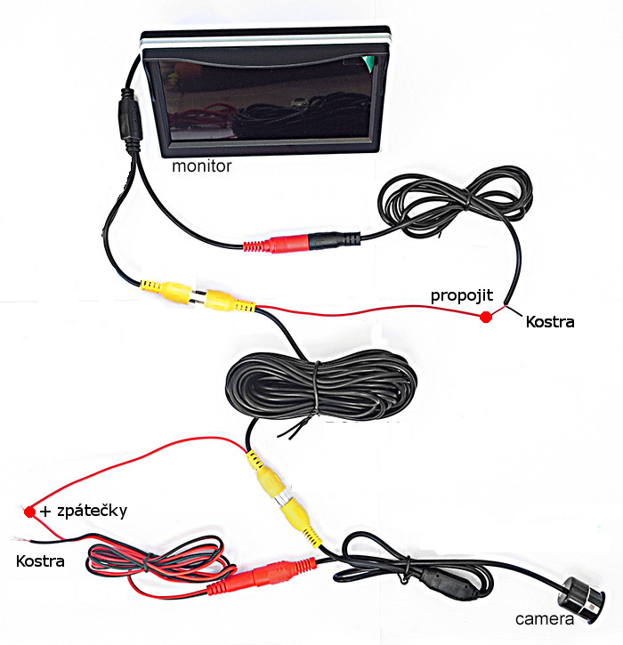 Medzi kamerou a monitorom je len VIDEO kábel. Kamera aj monitor sú samostatné zdroje.