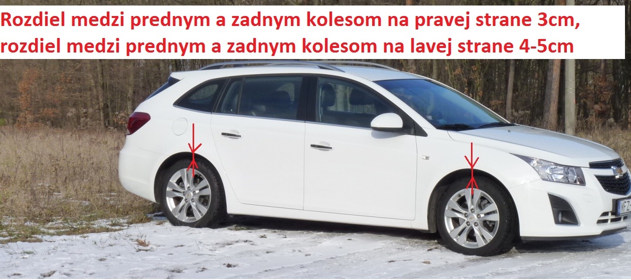 Auto som pootacal 90 stupnov na rovnej ceste, ale vzdy je medzera medzi kolesom a blatnikom na zadnej naprave mensie ako nez na prednej naprave.