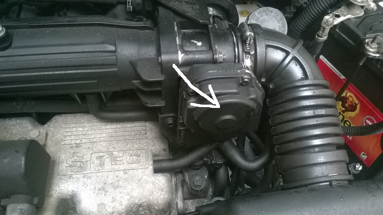 Děkuji za odpověď. Myslel jsem, že je to těleso škrtící klapky. Tu jsem měl dole a celou ji čistil. Je u toho i plastový nebo kovový "deklík" zajištěný šroubky. Označený šipkou.