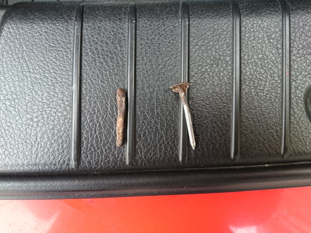 Já měl onehdá pěkně uprostřed běhounu a v drážce nové pneumatiky dokonale kolmo zaražený velký hřebík a taky jsem nadával na neznámého "dárce", než mi v pneuservisu řekli, že i když to vypadá nemožné, tak jsem si na něj někde mohl klidně najet sám a dávno předtím, než jsem si toho všiml (kolo ucházelo jen velmi pozvolna).