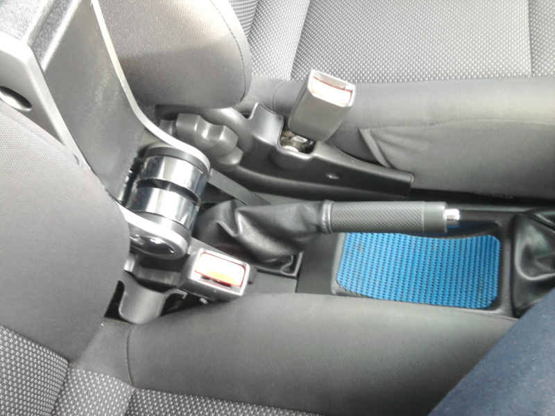 Povrch opierky som potiahol s bordovou koženkou čo mám aj na dverách, a boky som trošku vylepšil s chromom, aby to sedelo aj k ručnej brzde.