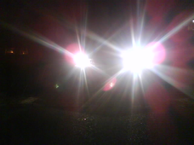 Další foto,tentokrát v noci.Dálkové,tlumené a parkovačky.