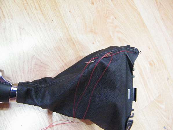 Nejdříve jsem přešil lemy na kůži do červena, aby mi to pasovalo k potahu volantu:
