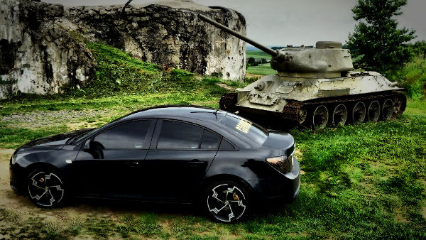 Chevrolet CRUZE 2.0 Černá Carbon, 19" GMP NINJA, filtr KN + chip, st.podvozek WEITEC HICON GT, přední světla Audi, zadní světla MB E class, fólie 5%, DVD rádio.