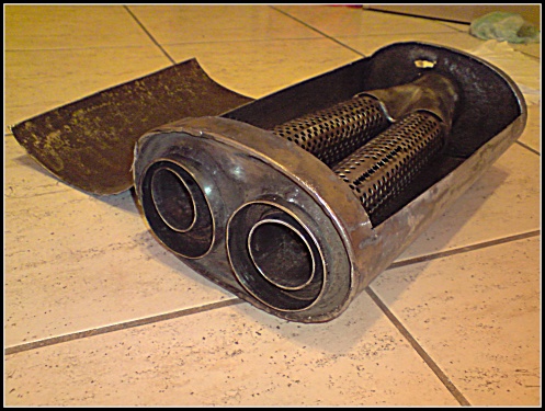 Ahojte konečne sa mi podarilo zohnat starší výfuk SEBRING za 0 ejro ktorý idem po menších úpravách dat na legu :D -P No najprv som ho musel otvorit ,lebo v nom čosi hrkalo takto to vyzeralo :( tu je foto. Zadné koncovky som odrezal namesto nich prídu nové expanzné koncovky a upravý sa aj celá dlžka výfuku .Celý sa vynatiera z dnuká aj z vonká nehorl.farbou a z dnuká sa ešte rury obalia drátenkou a vystele sa sklen.vatou pozavára a bude som zvedavý na ten zvuk :o ked bude hotový dám sem foto ;)