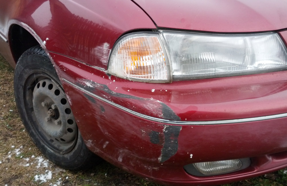 Dnes sa mi podarila taká malá šúchanica okolo betónového plota, výsledkom je upadnutá smerovka a ošúchaný blatník / plech.