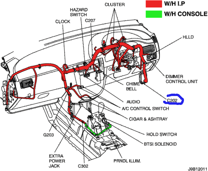 V elektroschématu to není zakresleno, ale pod přístrojovou deskou (tachometrem) který se musí demotovat je vzadu umístěná plastová svorkovnice. (svorkovnice je vidět až na plánu kabeláže- označení cluster) Je dvojitá a byla vyhořelá. Pro uvolnění se musí vypáčit šroubovákem.