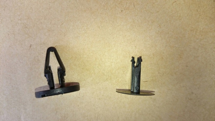 Plast kufru drží 4 speciální plastové nýtky ze spodní strany. Je potřeba vytáhnout napřed střed, teoreticky (jako u jiných výrobců) by to mělo fungovat tak, že se ten střed jen povytáhne a následně za ten střed vytáhnu celý nýtek včetně té spodní části, bohužel u Chevroletu to moc nejde a vždy vytáhnete celý střed a následně se těžko doluje ta druhá část ven. Chce to opatrně, nic nepoškrábat. Tady je foto celého nýtku pro představu jak to vlastně vypadá: Následně už vše drží pouze na křapkách, je jich tam dost a je to docela pevné tak je potřeba pořádně zabrat. Vtipné je, že dírka uprostřed schovaná za krytkou je tam asi právě kvůli tomu aby se dalo dobře zabrat u té prostřední křapky. Hranatý otvor, který jsem předpokládal, že je k nouzovému otevření zadních dveří je úplně k ničemu - z druhé strany jsou poměrně masivní háčky, takže než by to někdo vyklapl, tak to celé kolem poškodí. Odmastit vnitřek (technickým benzínem nebo něčím jiným), vylepil jsem ho antivibračním materiálem (odkazy v mých ostatních postupech). Protože strana s kabely (ta co je uvnitř auta) je u toho plechu hodně členitá a nepotřeboval jsem vytvářet ozvučnici, sundal jsem z toho plastu tu "peřinku" co tam nalepil výrobce, odmastil a doprostřed nalepil antivibrační hmotu, celé pak přelepil tlumící hmotou. Pak už vše jen poskládat zpět.