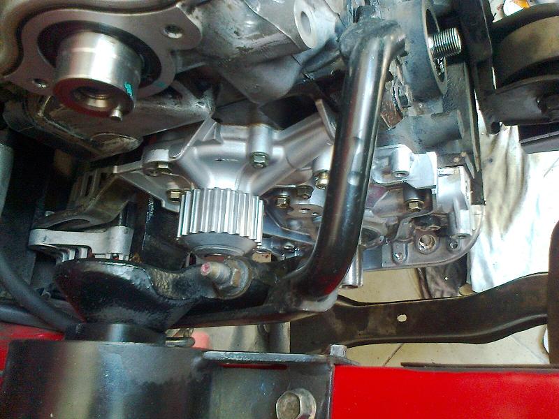 Ďakujem Palixovi za telefonickú radu (vodná pumpa sa nedá odmontovať musí ísť dole ľavý držiak motoru).