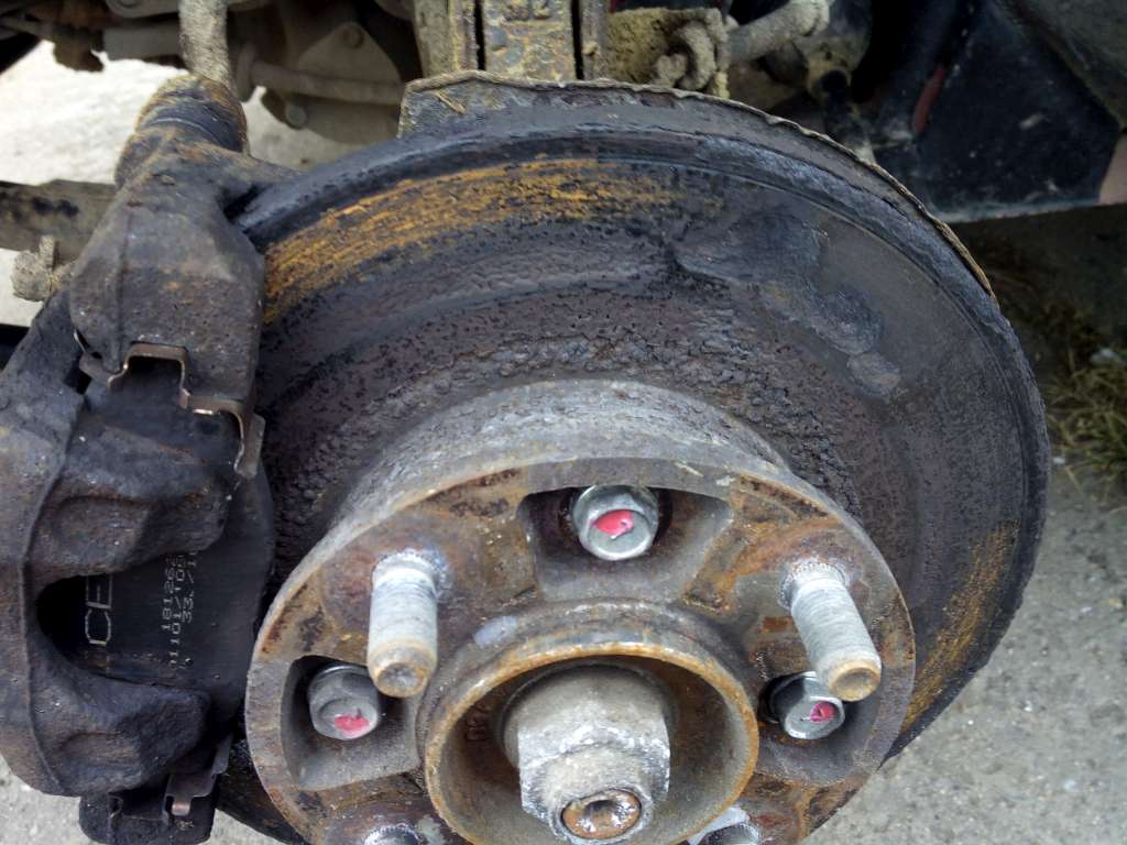 To co jsem zjistil mi vyrazilo dech. Na nápravách 10cm zkamenělého bláta, a kotouče na odpis.
