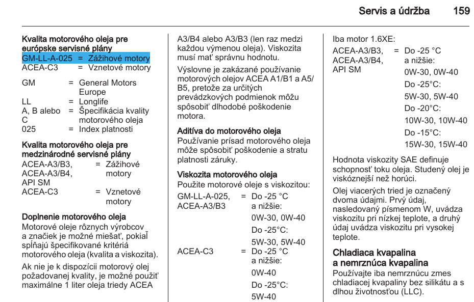 Zaklad je podla manualu (Cruze 1.8 benzin / r. 2010) aby splnalo GM-LL-A-025.